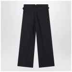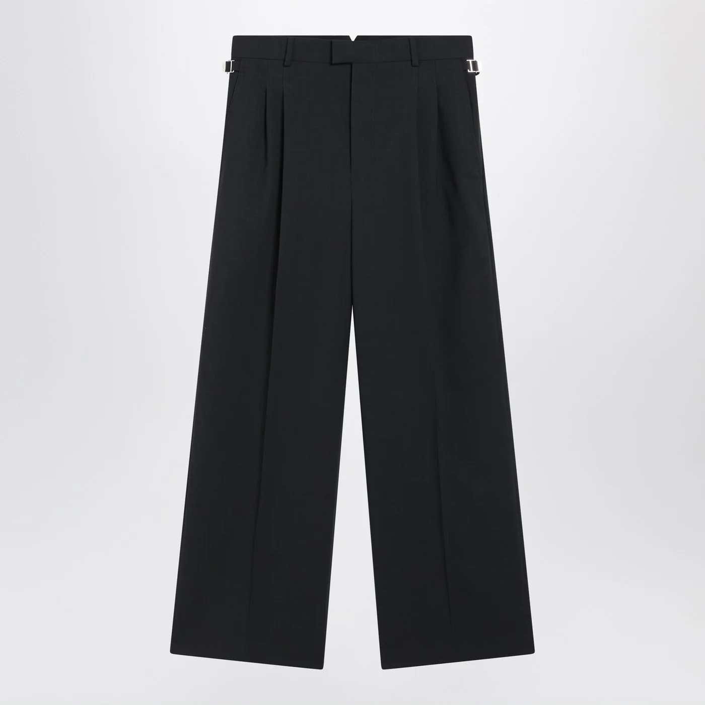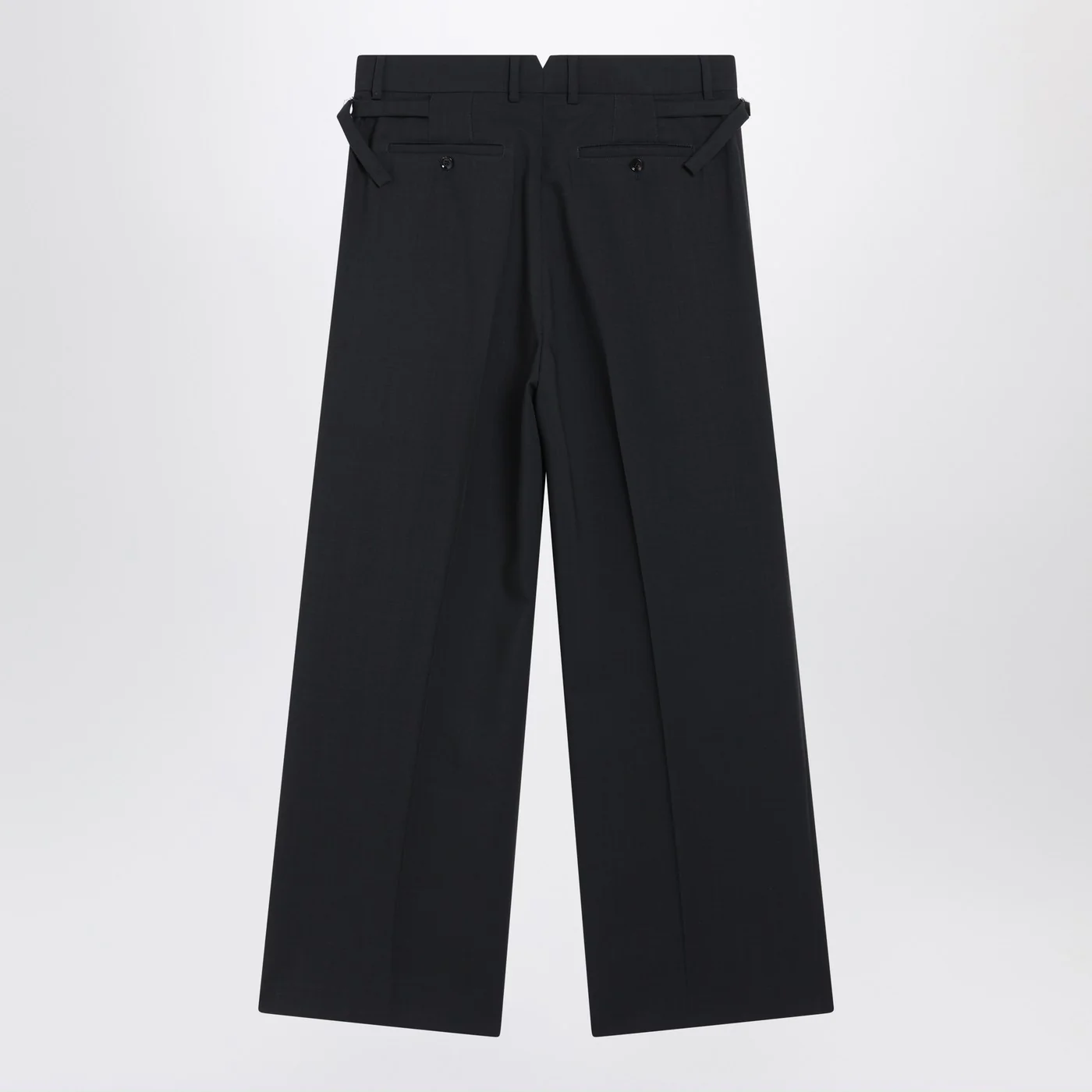 Ami Paris trousers in virgin wool in anthracite grey characterized by a front closure belt loops two side welt pockets two welt pockets with button at the back wide leg pleats at the front and detail with side straps.