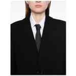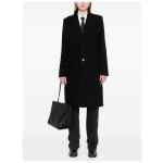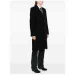 black wool felted notched lapels front button fastening long sleeves buttoned cuffs straight hem American rear vent chest welt pocket two front flap pockets full lining Wool single-breasted coat