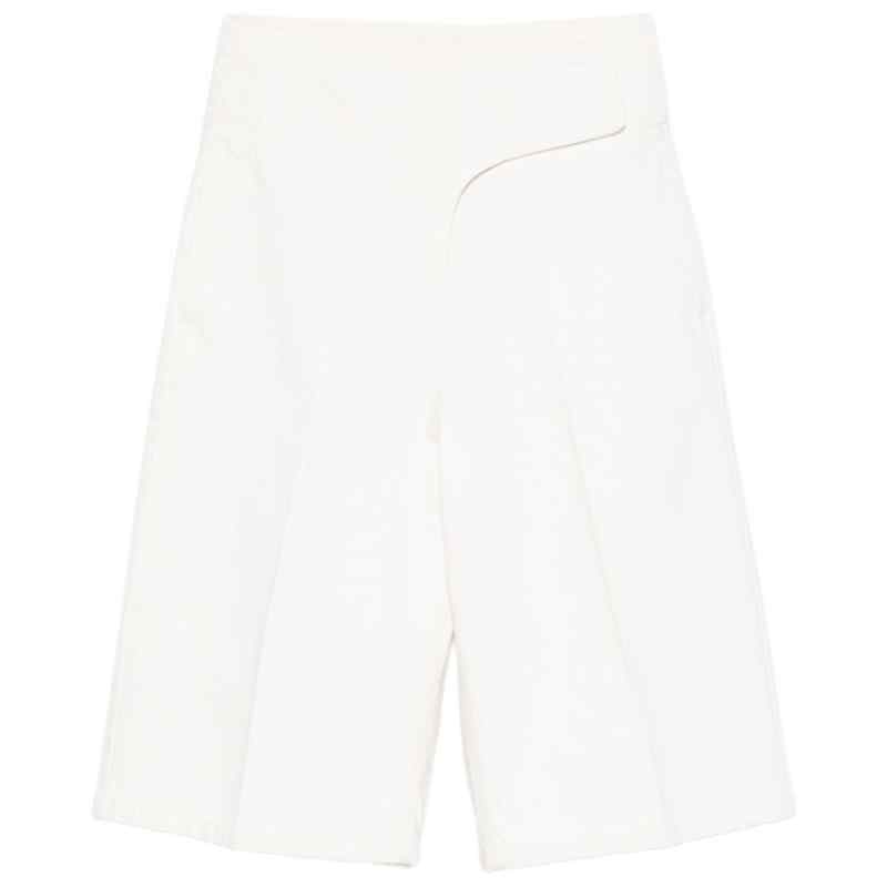 cream white cotton high-waisted panelled design rear welt pocket concealed fly fastening Cotton bermuda shorts.