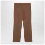 Ami Paris trousers in virgin wool in hazelnut colour, characterized by a front closure with zip and hook, belt loops, two side pockets and two welt pockets with button on the back.