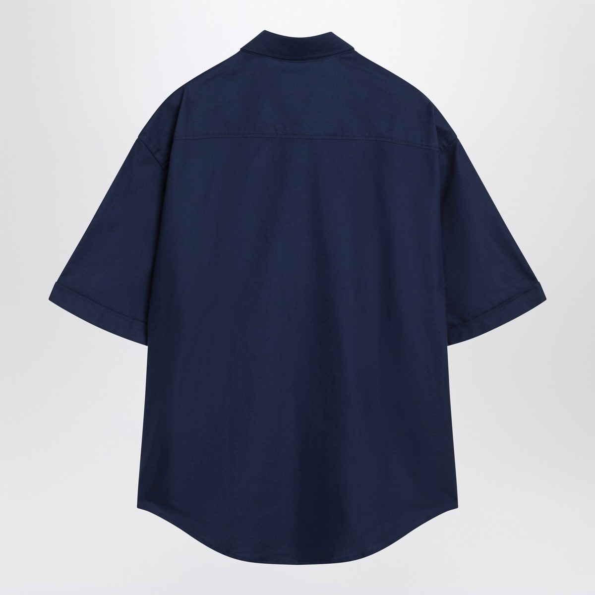 Ami Paris ink-blue Oxford cotton shirt, featuring a button-down collar, short sleeves, one chest patch pocket with tone-on-tone Ami de Coeur embroidery, front button fastening and boxy fit.