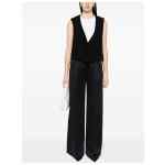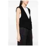 black virgin wool V-neck sleeveless two side welt pockets internal logo tag full lining straight hem open front Wool sleeveless jacket