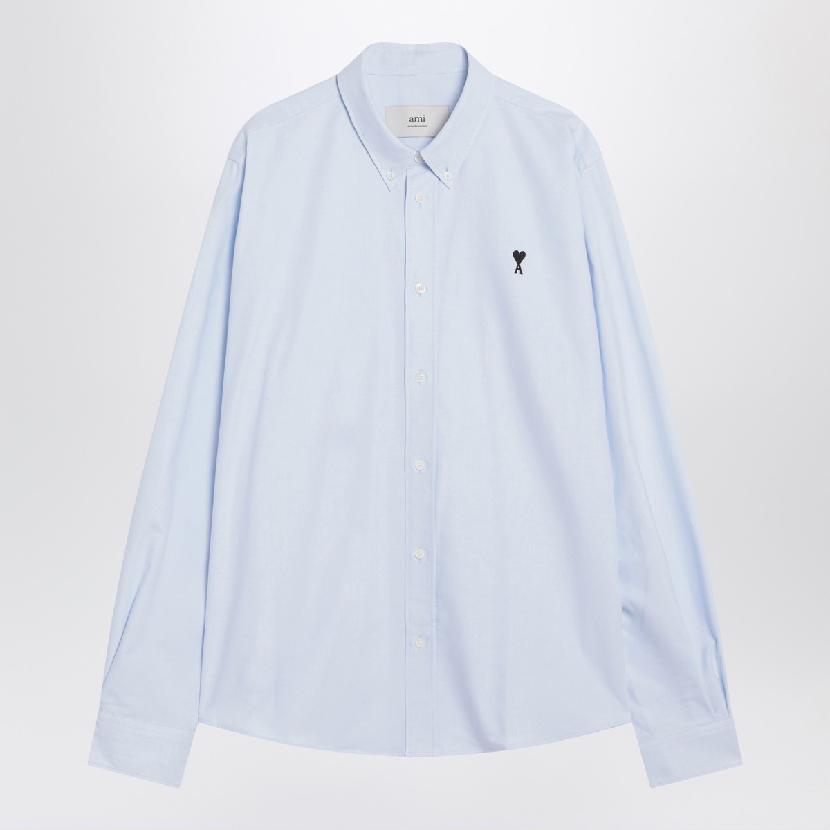 Ami Paris light blue cotton shirt featuring a contrasting Ami De Coeur embroidery on the chest, button-down collar, front button fastening, long sleeves, buttoned cuffs and curved hem.