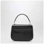 Ami Paris black leather bag featuring a removable and adjustable shoulder strap, top handle, magnetic flap closure, gold-tone Ami De Coeur metal plaque on the front, suede lining, one central compartment with a patch pocket and one front compartment.