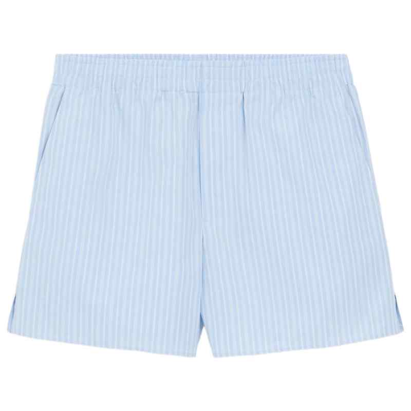 blue cotton striped elasticated waist side pockets back patch pocket side slits Striped cotton shorts.