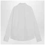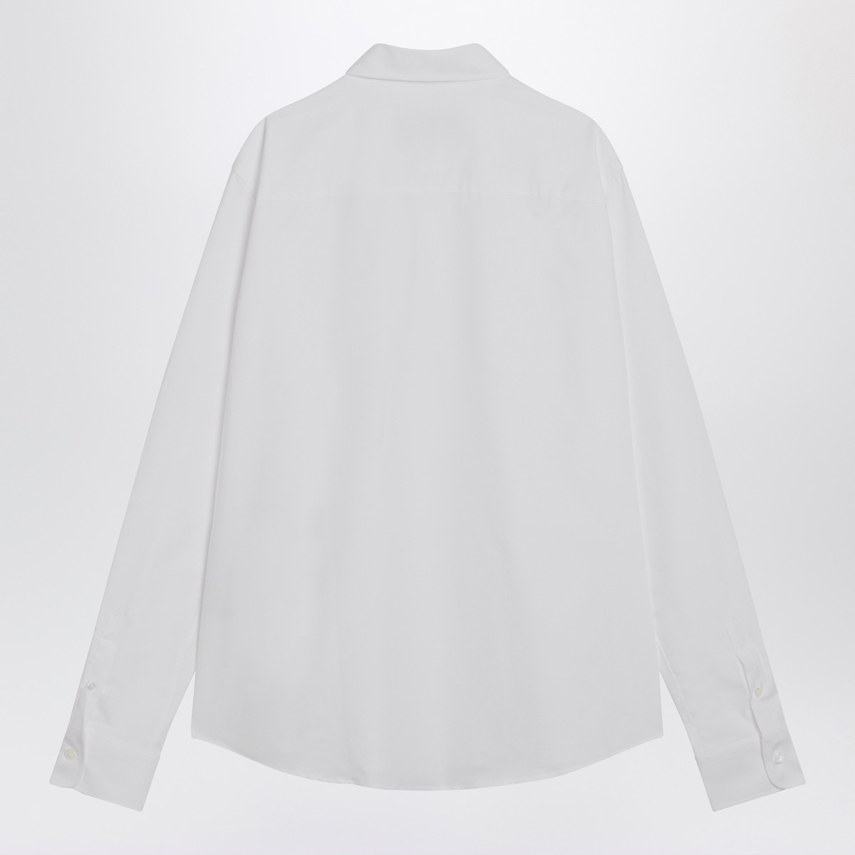 Ami Paris white cotton shirt, featuring contrasting Ami De Coeur embroidery on the chest, button-down collar, front buttoning, long sleeves, button cuffs, and curved hem.