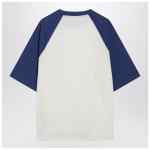 T-shirt by Ami Paris in cream white and ink blue cotton, featuring short sleeves, a ribbed crew neck and a tone-on-tone raised Ami de Coeur logo on the chest.