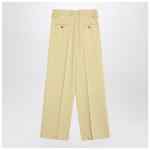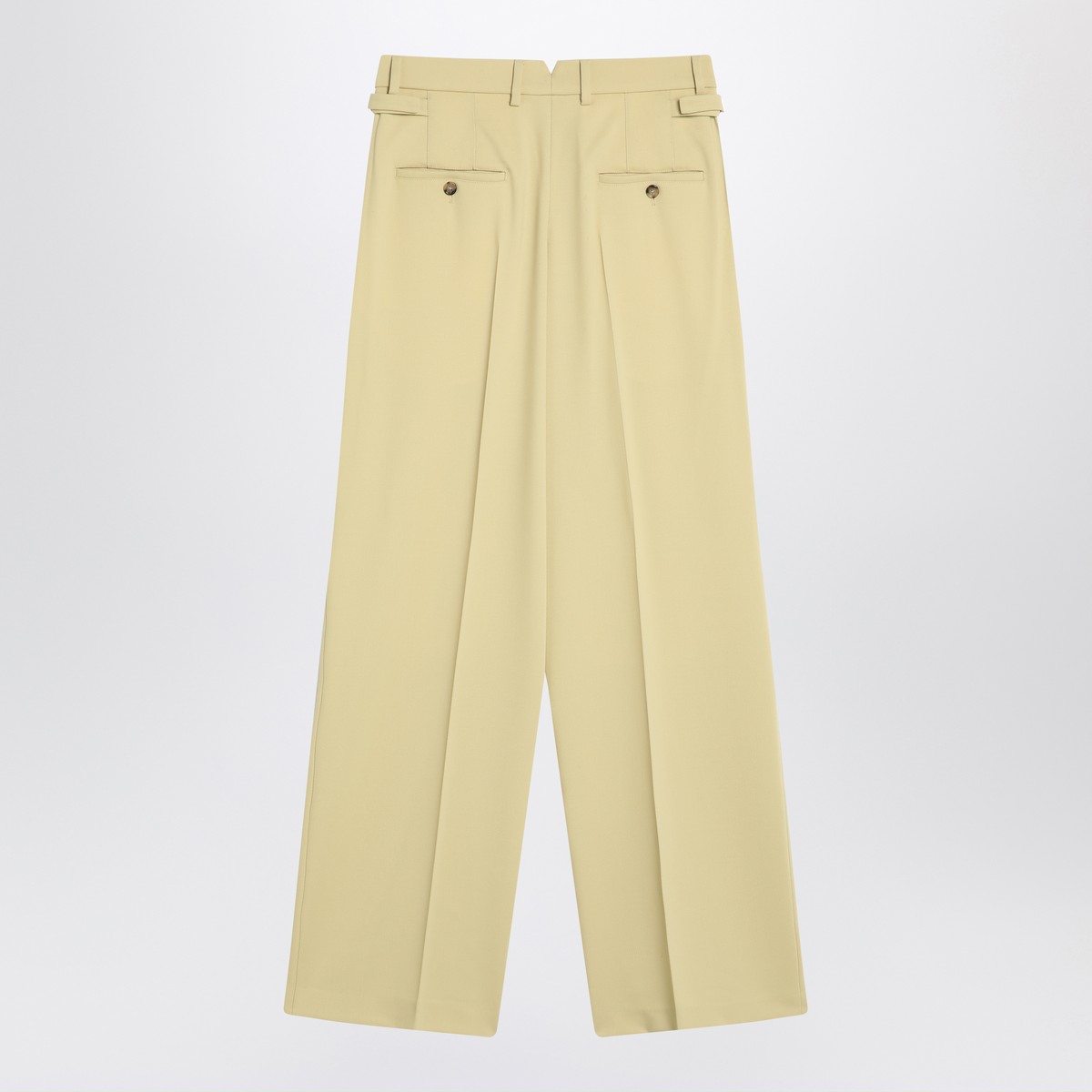 Ami Paris lime virgin wool trousers, featuring a front zip closure with hook, belt loops, front pleats, two side welt pockets, two back welt pockets with button, and adjustable side logo straps.