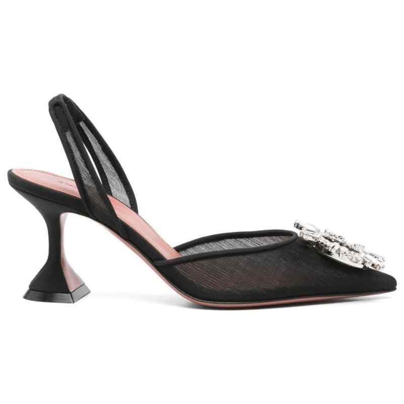 Amina Muaddi Begum Mesh Sling 70 Black Mesh