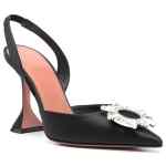 black satin finish pointed toe crystal embellishment branded leather insole 105mm mid sculpted heel elasticated slingback strap Begum slingback pumps. Size and Fit – height Heel 10cm