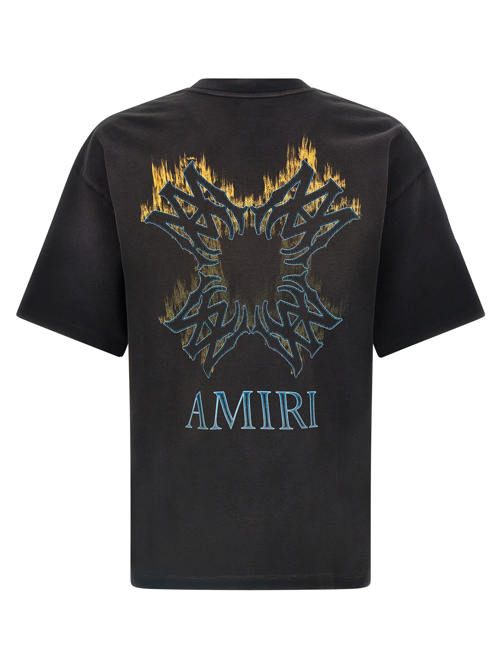 ‘ma quad flames’ cotton jersey t-shirt with used and délavé effect, Print on the front and back, Crew neck, Short sleeves with dropped shoulders.
