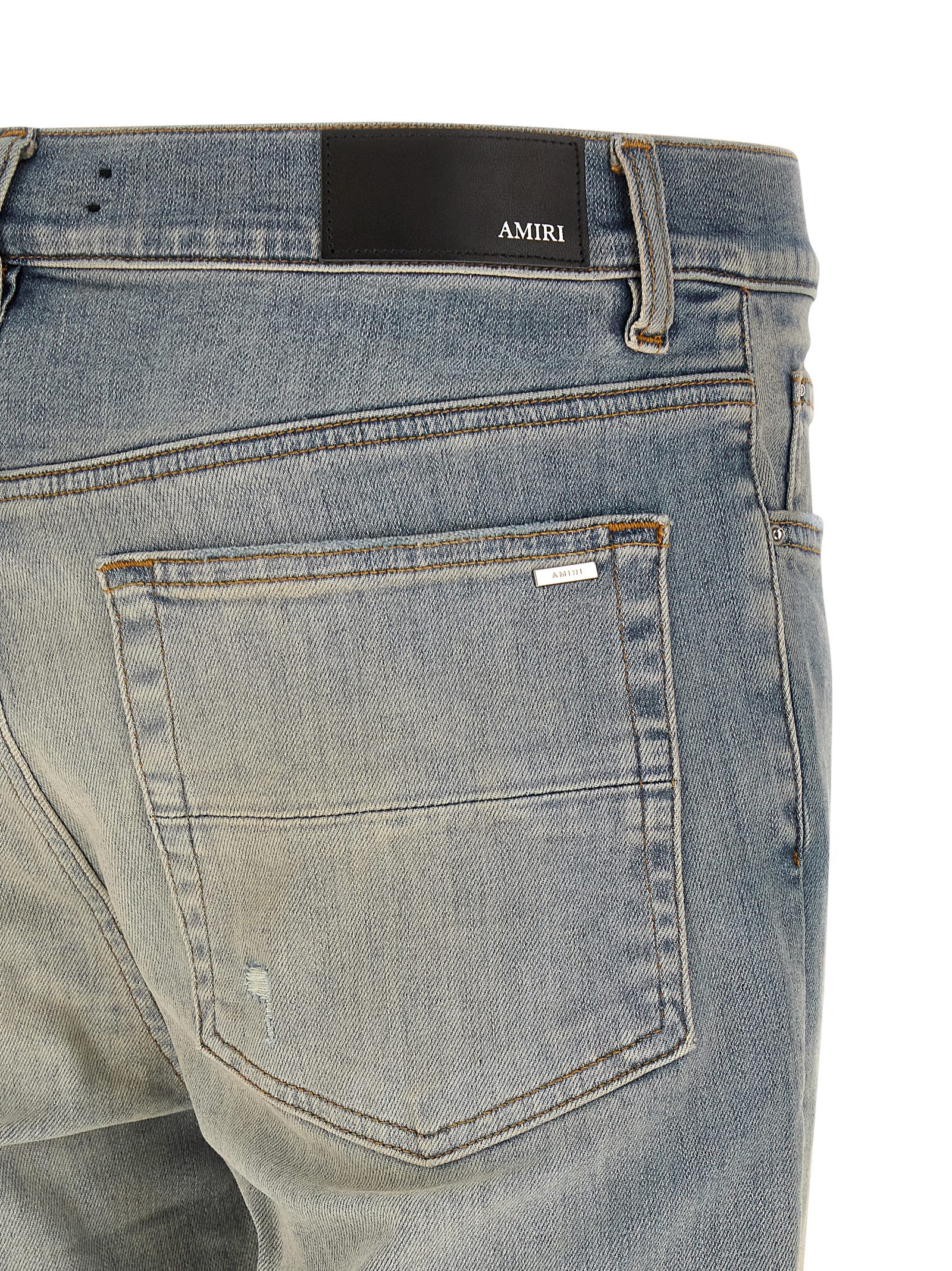 ‘stack’ used-effect stone washed stretch italian cotton denim jeans, Contrast stitching, Front button closure, Five pockets, Back leather logo tag.