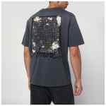 Amiri black cotton T-shirt with a faded effect, characterized by short sleeves, ribbed crew neck, embroidered logo lettering on the chest, and a patch with logo lettering on the back.