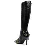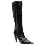 Cagole 90mm pointed-toe boots from BALENCIAGA featuring black, calf leather, embossed crocodile effect, bronze-tone hardware, pointed toe, knee-length, side zip fastening and high heel. Conscious: We’ve partnered with Good On You – an ethical agency that rates how sustainably brands perform. This item comes from a brand that performs well in relation to their impact on the planet.. Le Cagole leather heel boots