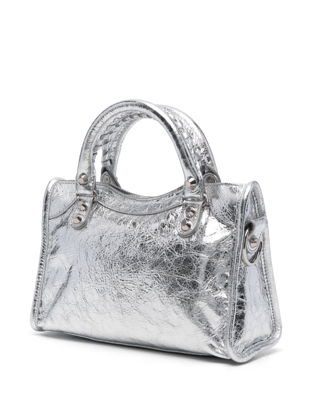 silver-tone calf leather metallic finish top zip fastening two rolled top handles adjustable detachable shoulder strap silver-tone stud embellishment whipstitch detailing front zip-fastening pocket decorative buckle detail main compartment internal zip-fastening pocket debossed internal logo full lining This piece comes complete with a protective dust bag. Le City mini leather handbag