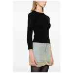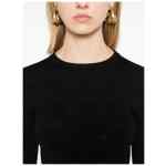 black wool blend open knit BB pattern crew neck long sleeves straight hem cropped unlined Open-knit wool top