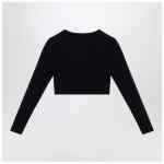 Black matte nylon blend crew-neck top from Balenciaga featuring long sleeves, a wide neckline, a reflective logo print on the front and tone-on-tone stitching.