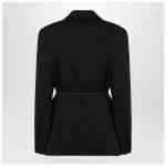 Single-breasted jacket by Balenciaga in black wool, featuring classic lapels, one welt chest pocket, two front flap pockets, long sleeves with buttoned cuffs, a side tie detail and a back vent.