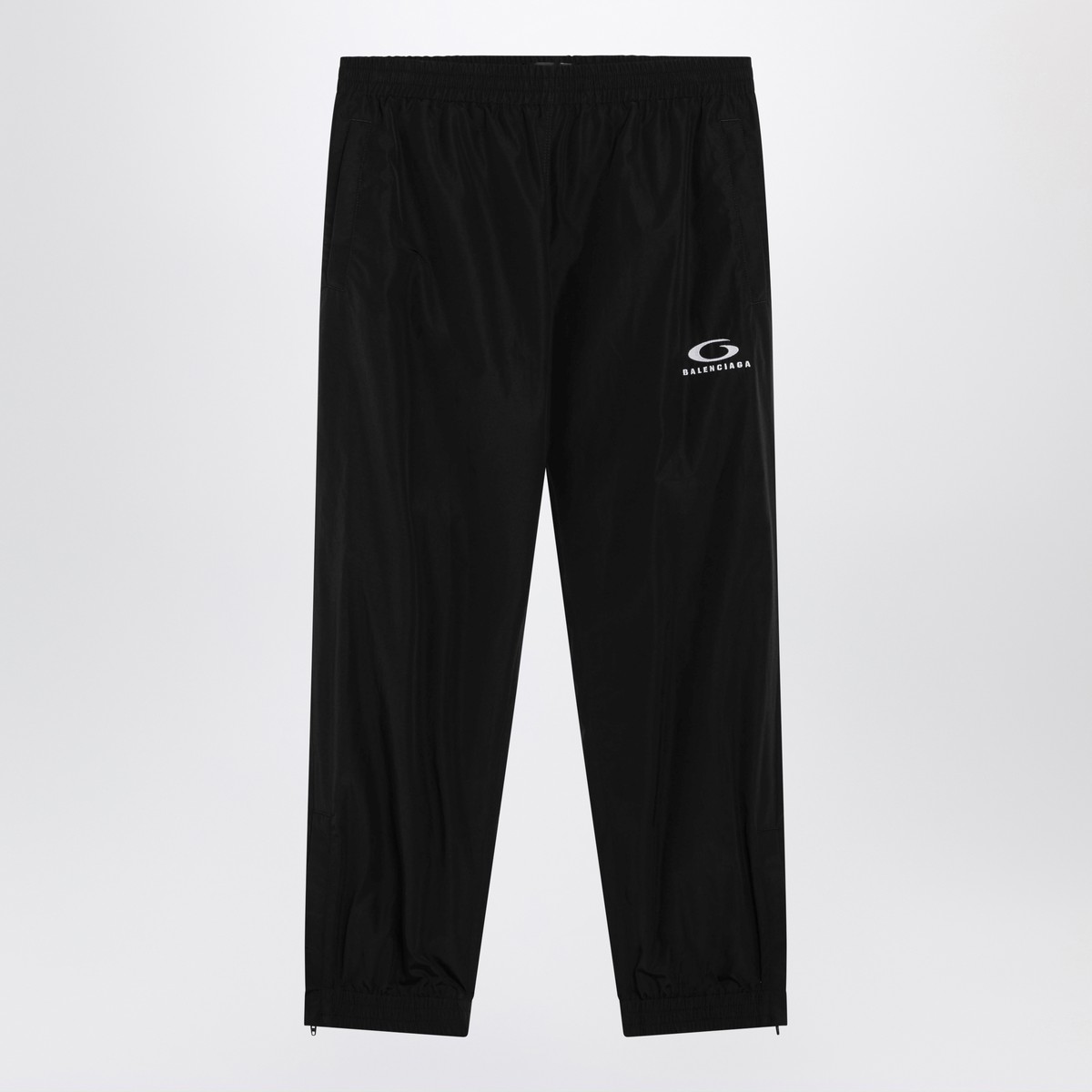Jogging trousers in black cotton blend, featuring an elasticated waist, two side pockets, elasticated ankles with zip and contrasting embroidered Loop Sports Icon motif on the front.