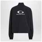 Balenciaga black washed lightweight jacket featuring front zip closure, long sleeves, dropped shoulders, high collar, elasticated cuffs and hem, two side pockets, contrasting embroidered Loop Sports Icon motif on the front and back and an oversize fit.