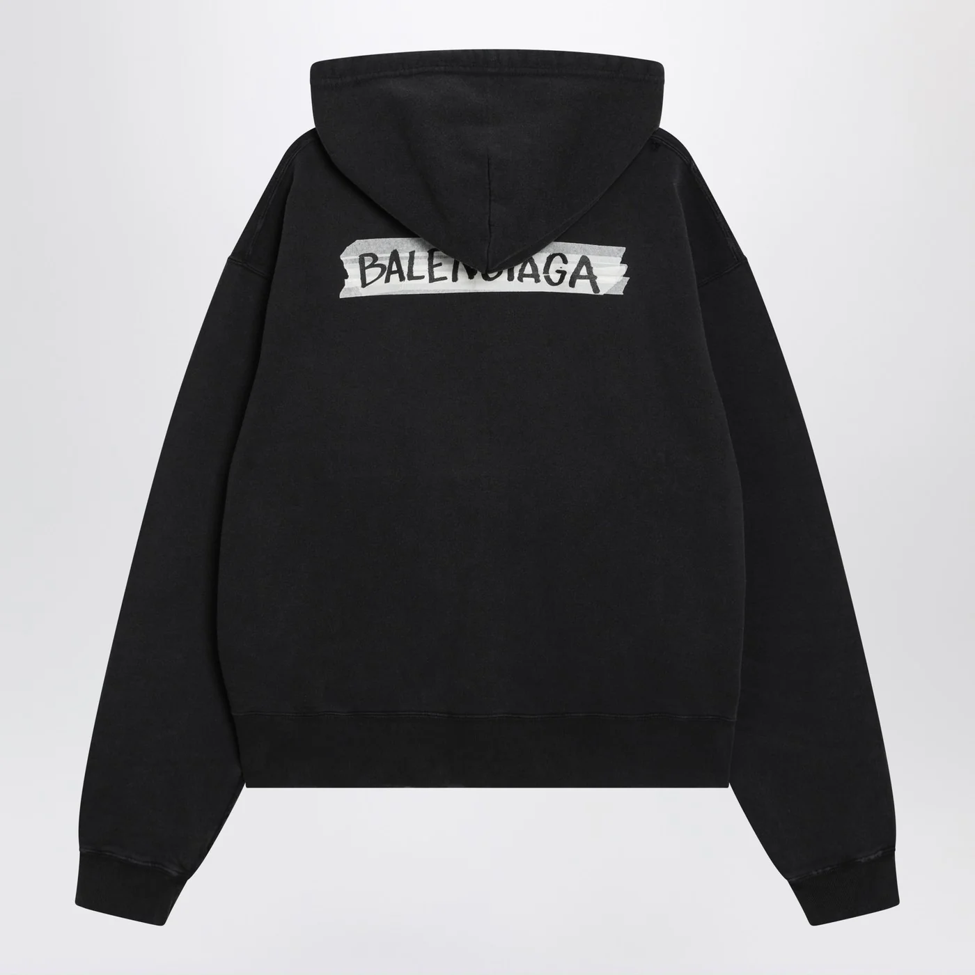Hoodie by Balenciaga in faded-effect black dry fleece