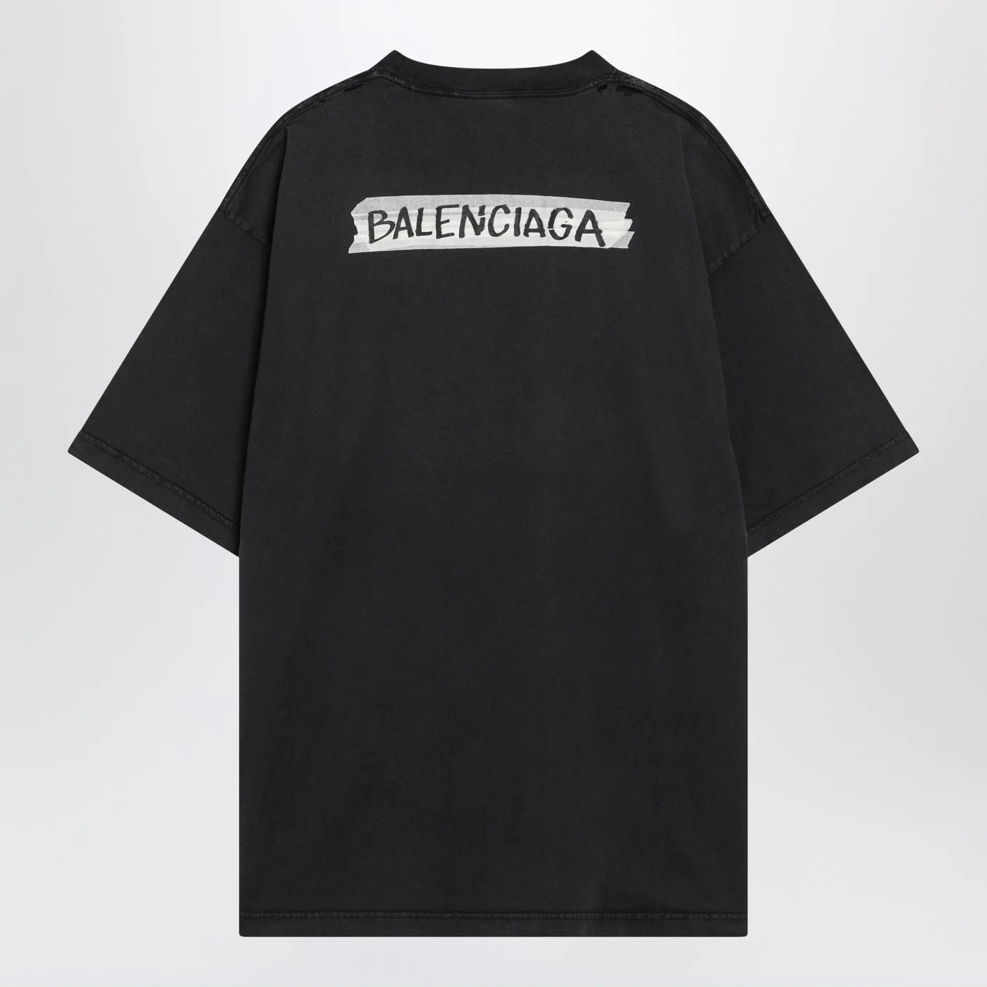 Balenciaga Black washed Masking Tape T-shirt with medium fit