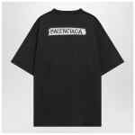 Black washed dry jersey T-shirt by Balenciaga, featuring a ribbed crew neck, short sleeves, masking tape motif printed on the front and back and a regular fit.