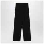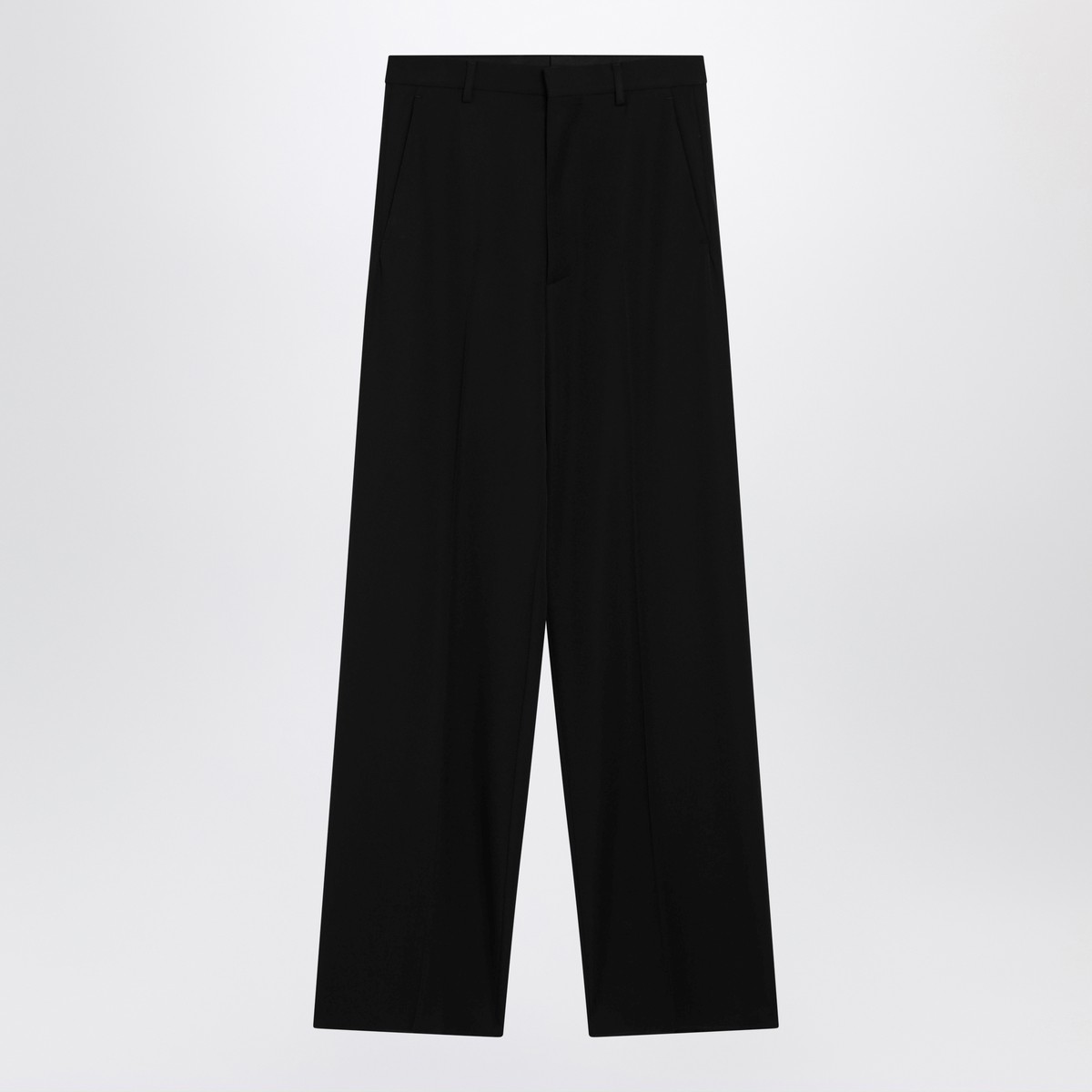 Trousers by Balenciaga in black wool, featuring a high waist with belt loops, wide leg, pressed crease on the front and back, two side pockets and one rear welt pocket with button.