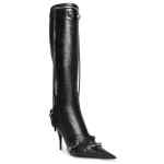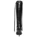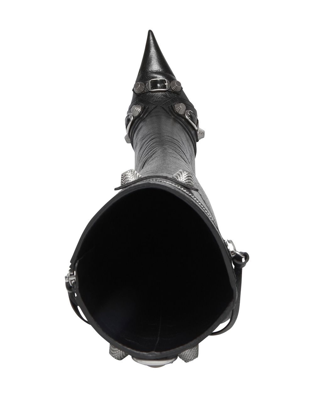 Cagole 90mm boots from BALENCIAGA featuring black, lambskin, pointed toe, high stiletto heel, palladium-tone hardware, stud embellishment, fringe detailing and side zip fastening. POSITIVELY CONSCIOUS: We’ve partnered with Good On You — an ethical agency that rates how sustainably brands perform across various people, planet and animal welfare criteria. This product comes from a Conscious brand that performs well in relation to their impact on the planet, for example ensures the use of materials that limit the amount of chemicals, water and wastewater involved in production processes.. Le Cagole leather boots