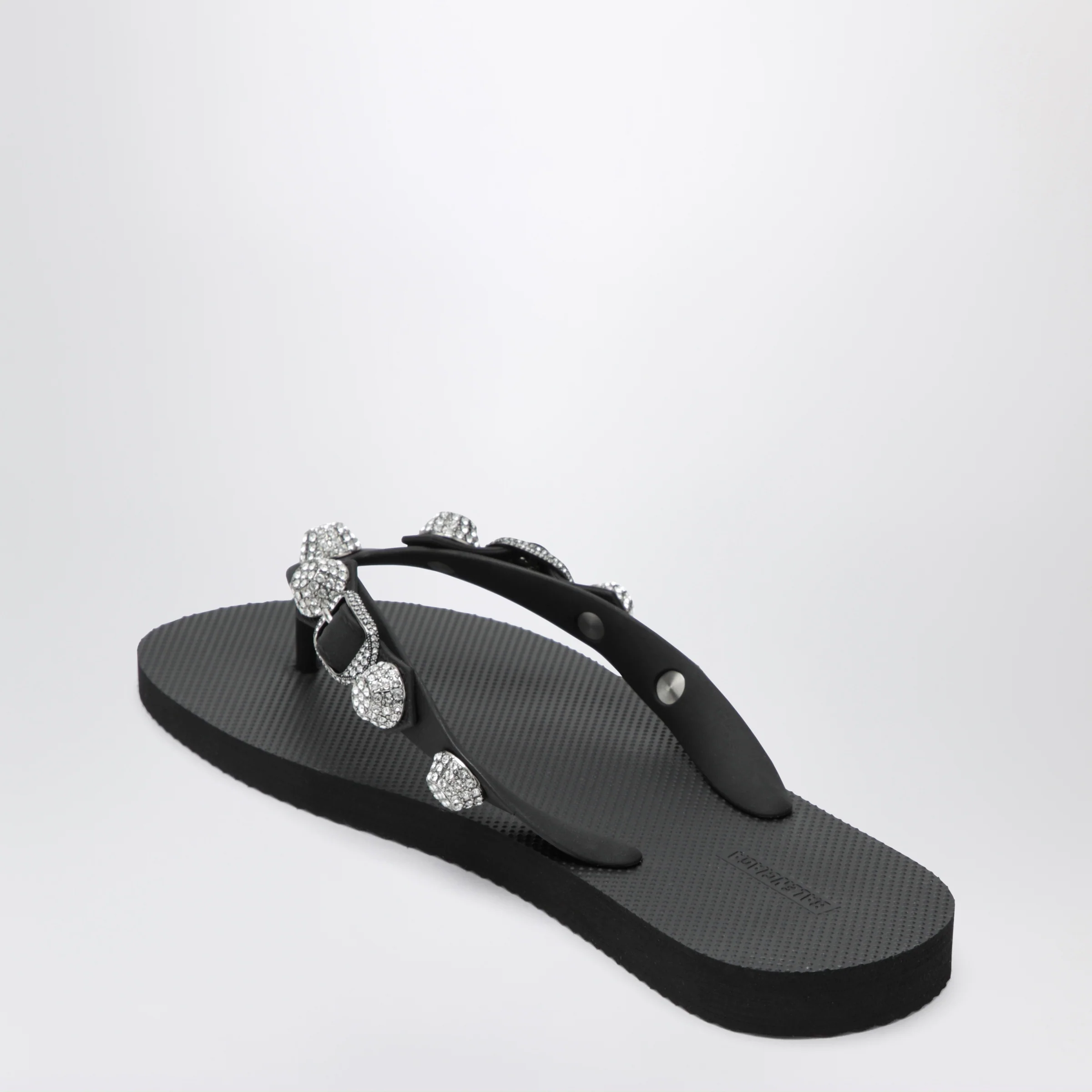 Balenciaga Cagole crystal-studded rubber thong sandals, black