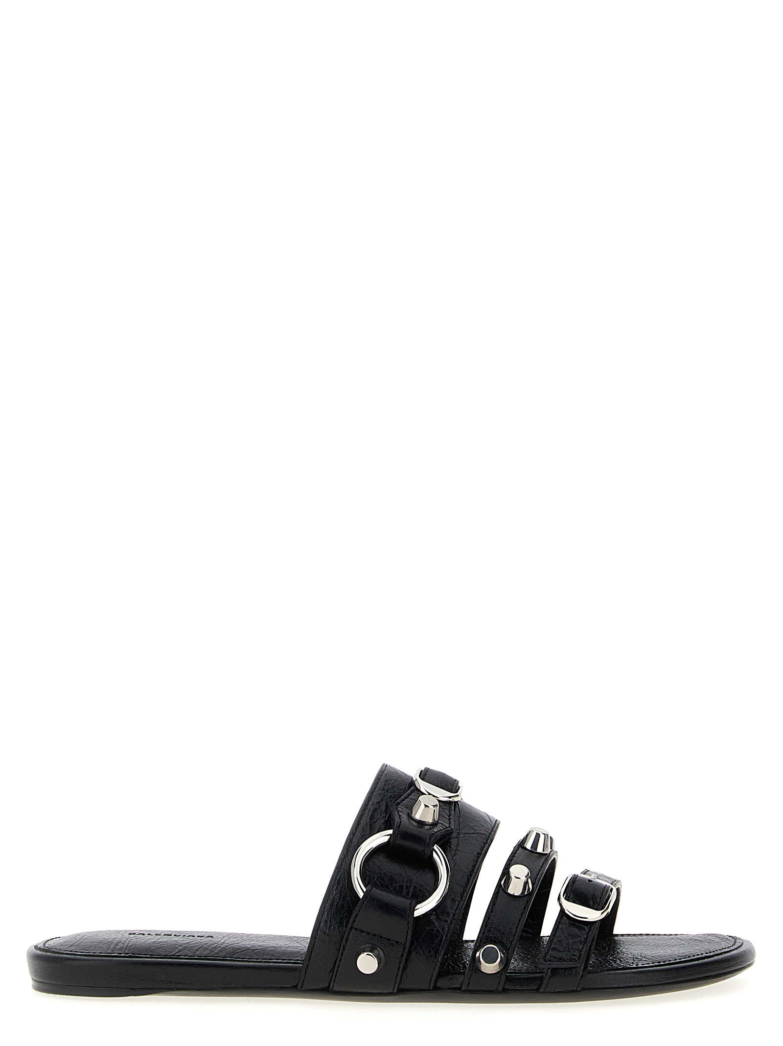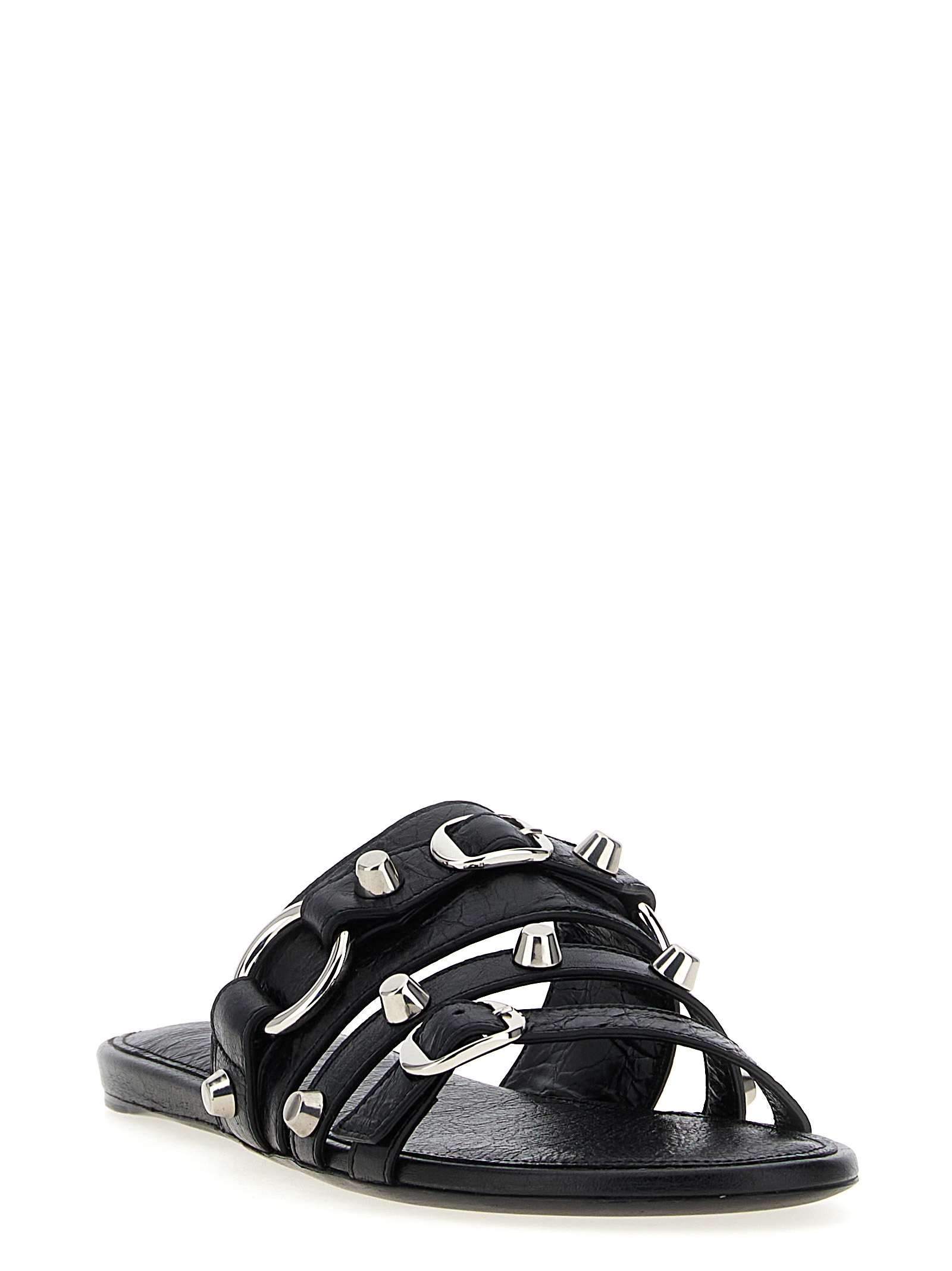 Arena ‘City’ lambskin sabots with silver ABS studs and buckles and leather sole.