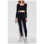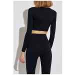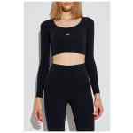 black stretch-design reflective logo print to the front U-neck long sleeves straight hem Logo cropped top