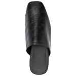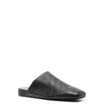 debossed-logo leather mules from BALENCIAGA featuring black, calf leather, all-over debossed logo print, slip-on style, round toe and flat leather sole. Cosy BB leather slippers