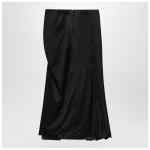 Black cupro twill skirt from Balenciaga featuring a draped, crinkled-effect design, a back zip and hook-and-eye closure, a back slit and a raw-cut, frayed-effect hem.