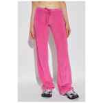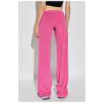 pink cotton blend drawstring fastening elasticated waistband long length Velvet trousers