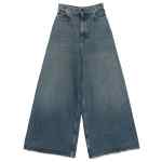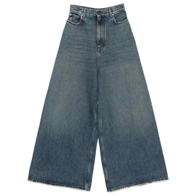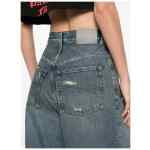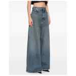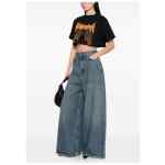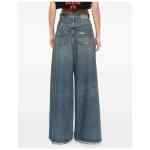 blue wide leg distressed effect five pockets belt loops zip and button closure Flared denim jeans.