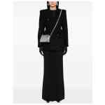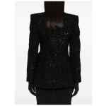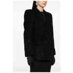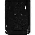black wool blend tweed bouclé design peak lapels shoulder pads long sleeves with buttoned cuffs two front flap pockets two side inset pockets straight hem full lining double-breasted button fastening Wool blend coat