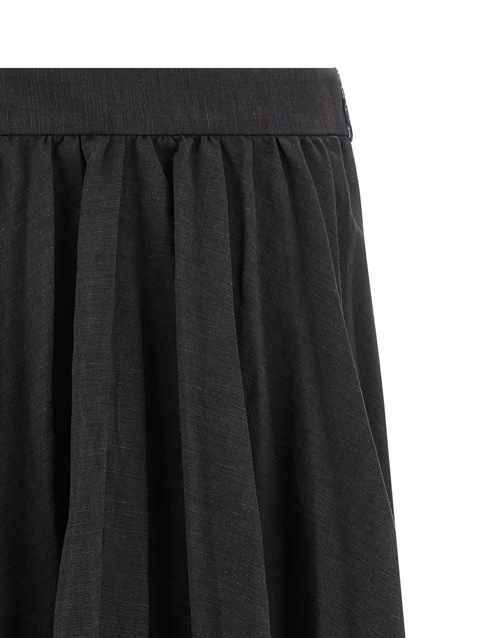 Hybrid Pleated’ midi skirt in solid linen with stonewashed pleats and cotton denim, side zip closure, pockets and back logo tag.