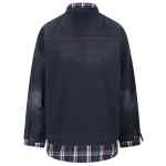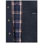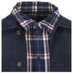 navy blue check pattern button fastening front patch pocket buttoned cuffs collar