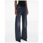 dark navy frayed hem whiskering five pockets belt loops regular fit Curved denim jeans