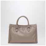 Small tote bag by Balenciaga in sesame-coloured Arena Storico lambskin leather, featuring two top handles, an adjustable and removable shoulder strap, a zip fastening, a leather zip puller, a front zip pocket and an interior zip pocket.