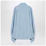 Balenciaga shirt in blue striped technical viscose, characterized by front buttoning, a chest pocket with logo lettering embroidery, long sleeves with buttoned and tied cuffs at the back, rounded hem, and regular fit.