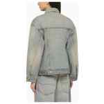 Light blue cotton denim jacket from Balenciaga featuring a classic pointed collar, long sleeves, two front flap pockets and a button fastening.