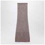 Maxi dress in shiny light brown and silver viscose with sequins, characterized by a fitted design, elasticated waist, ribbed edges, and flared hem.