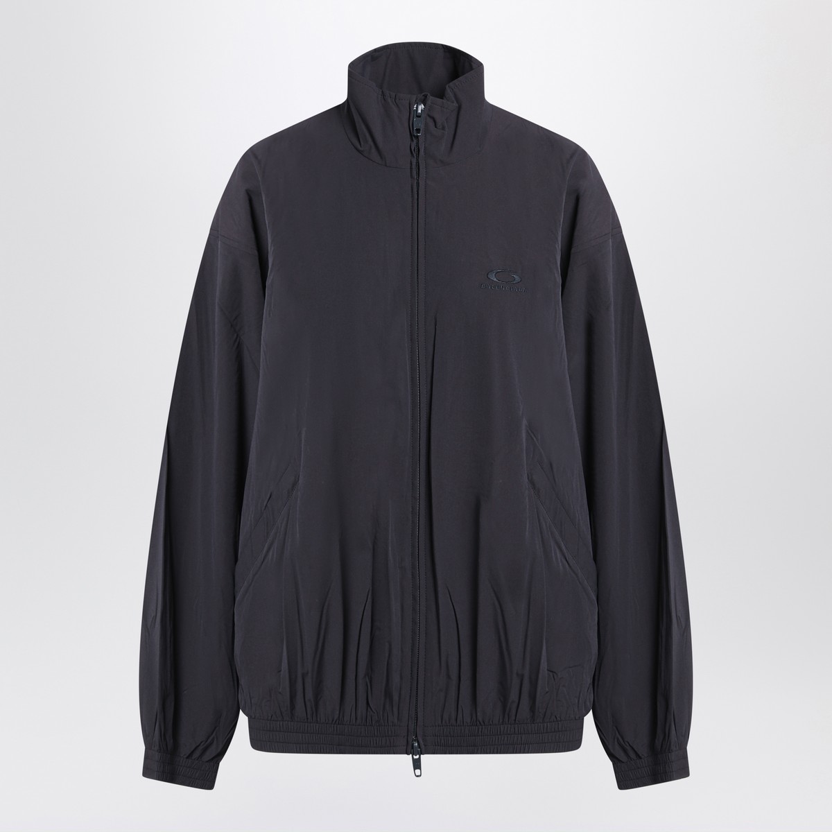 Lightweight black jacket by Balenciaga in black technical nylon, featuring a zip closure, Icon logo embroidery on the chest, welt front pockets, and elasticized cuffs and hem.