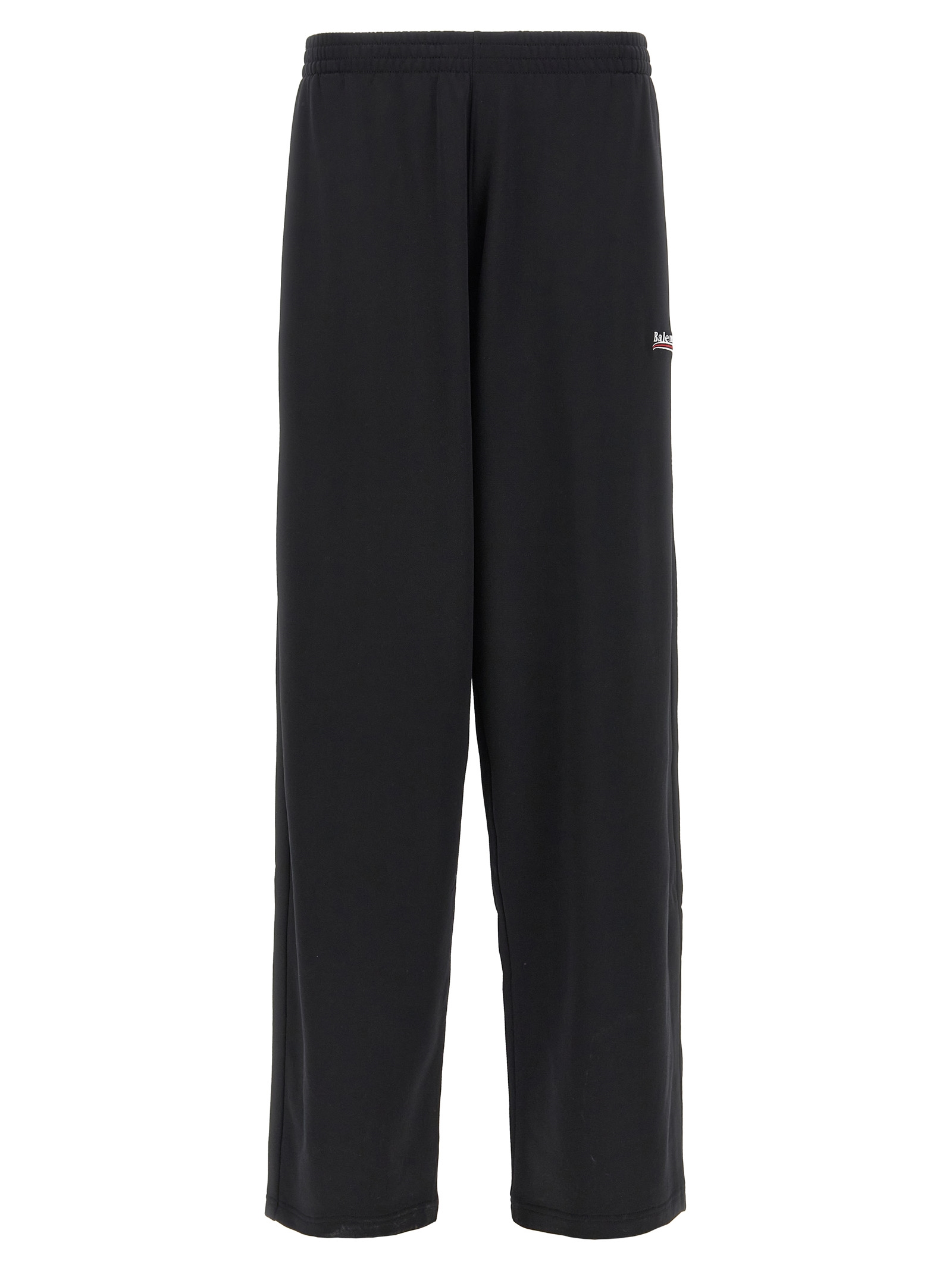 Joggers in technical fabric, Front logo embroidery, Baggy style with wide leg, Elastic with adjustable drawstring at the waist, Pockets.
