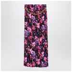 Long skirt by Balenciaga in satin, featuring AI Purple Bouquet print, a pleated design, a high waist, a gold-tone chain detail to the front and a side zip fastening
