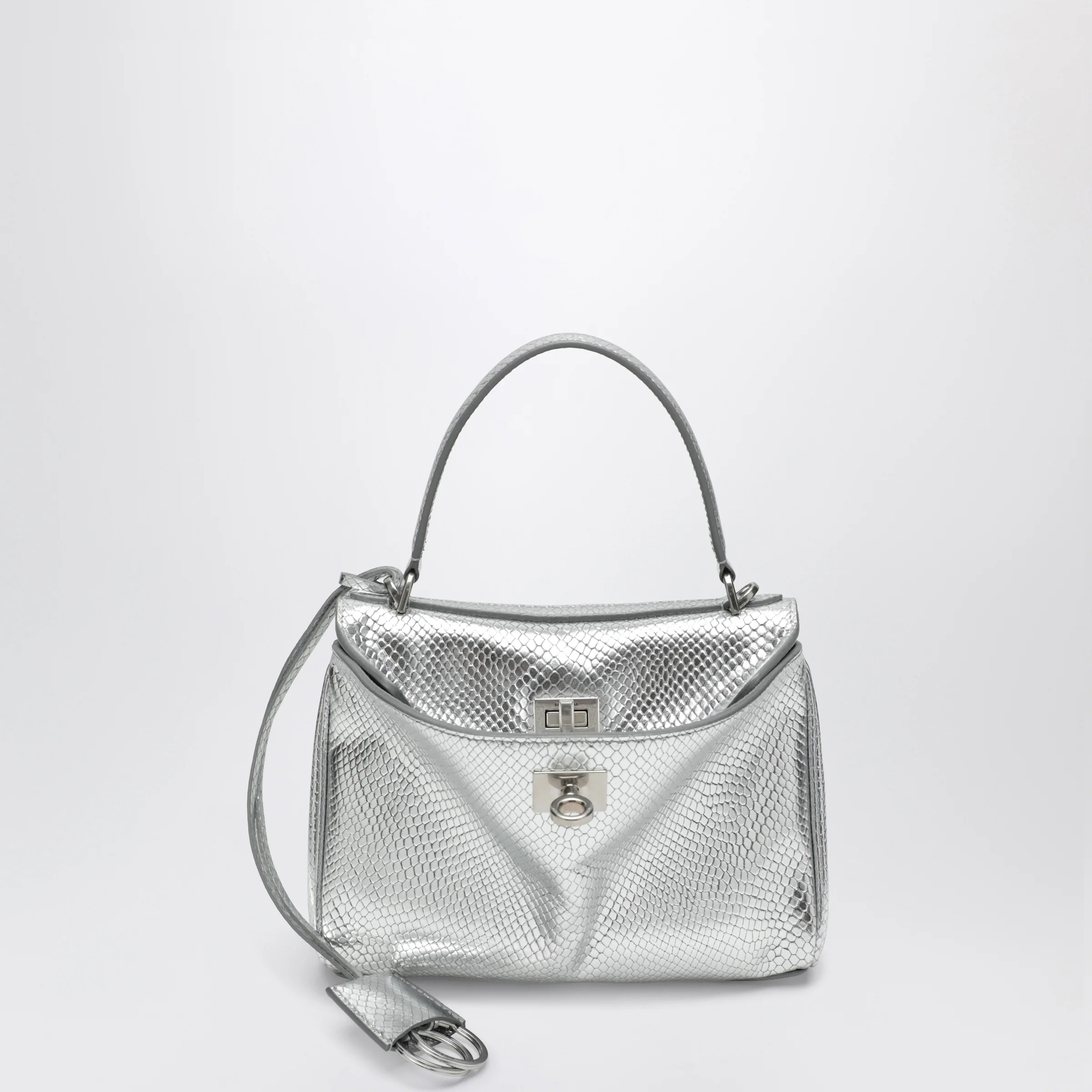 Balenciaga Mini Rodeo bag in shiny silver leather with python print