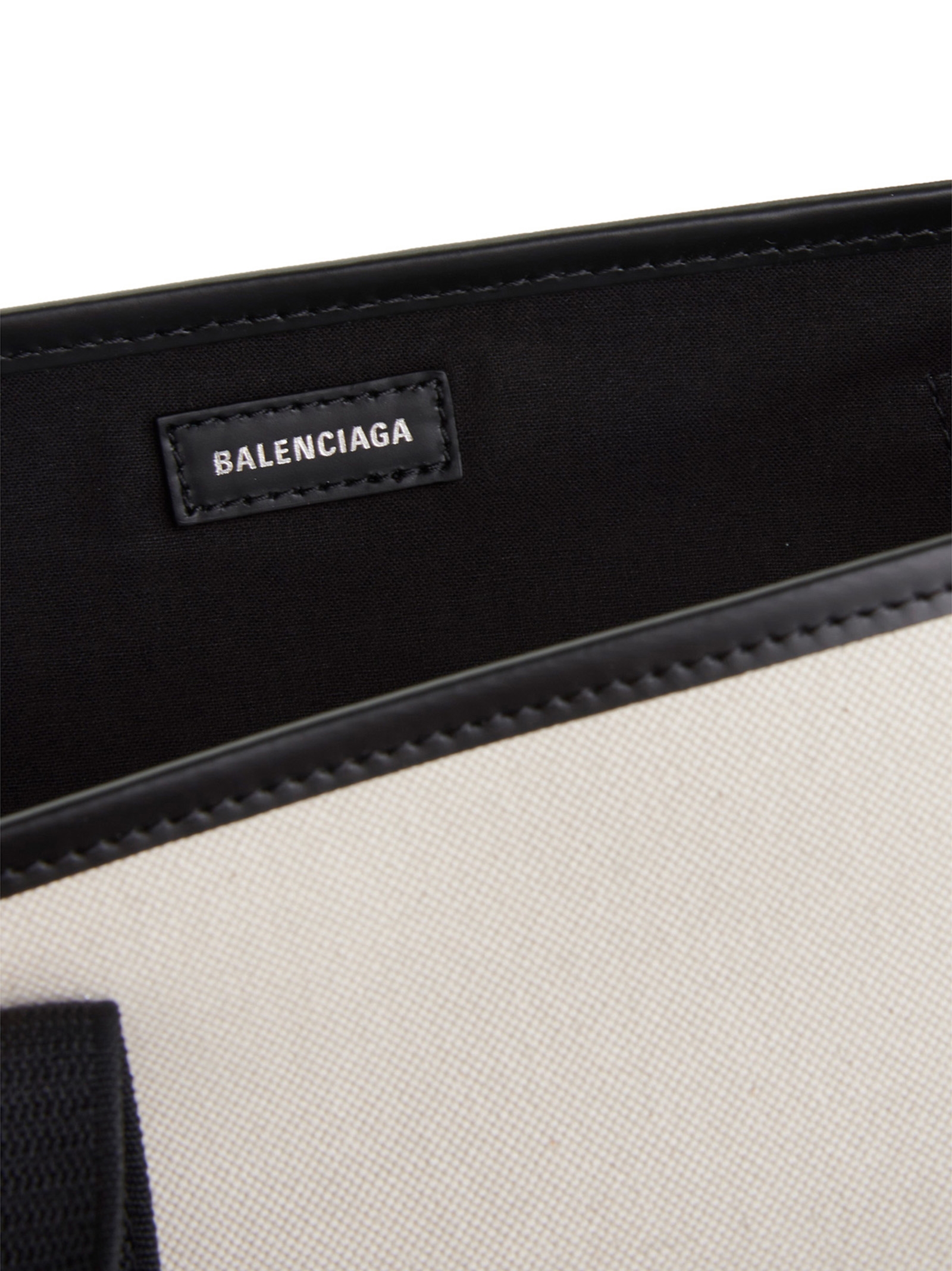 Small ‘Navy cabas’ canvas shopping bag with leather handles and front logo.