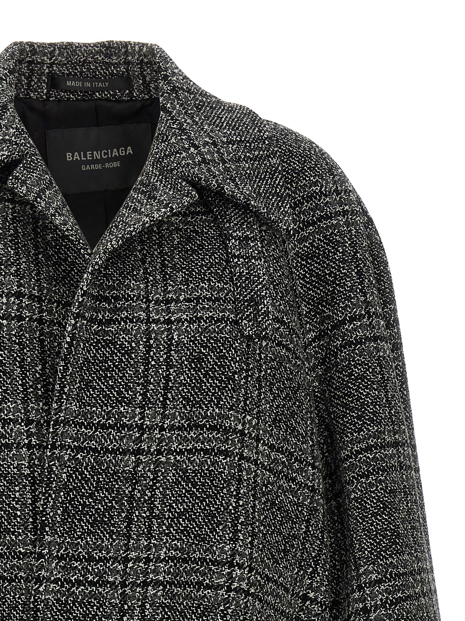 ‘One Layer’ vintage wool check coat, deconstructed Raglan model, cupro lining, pockets, deliberate lack of buttons, long sleeves.
